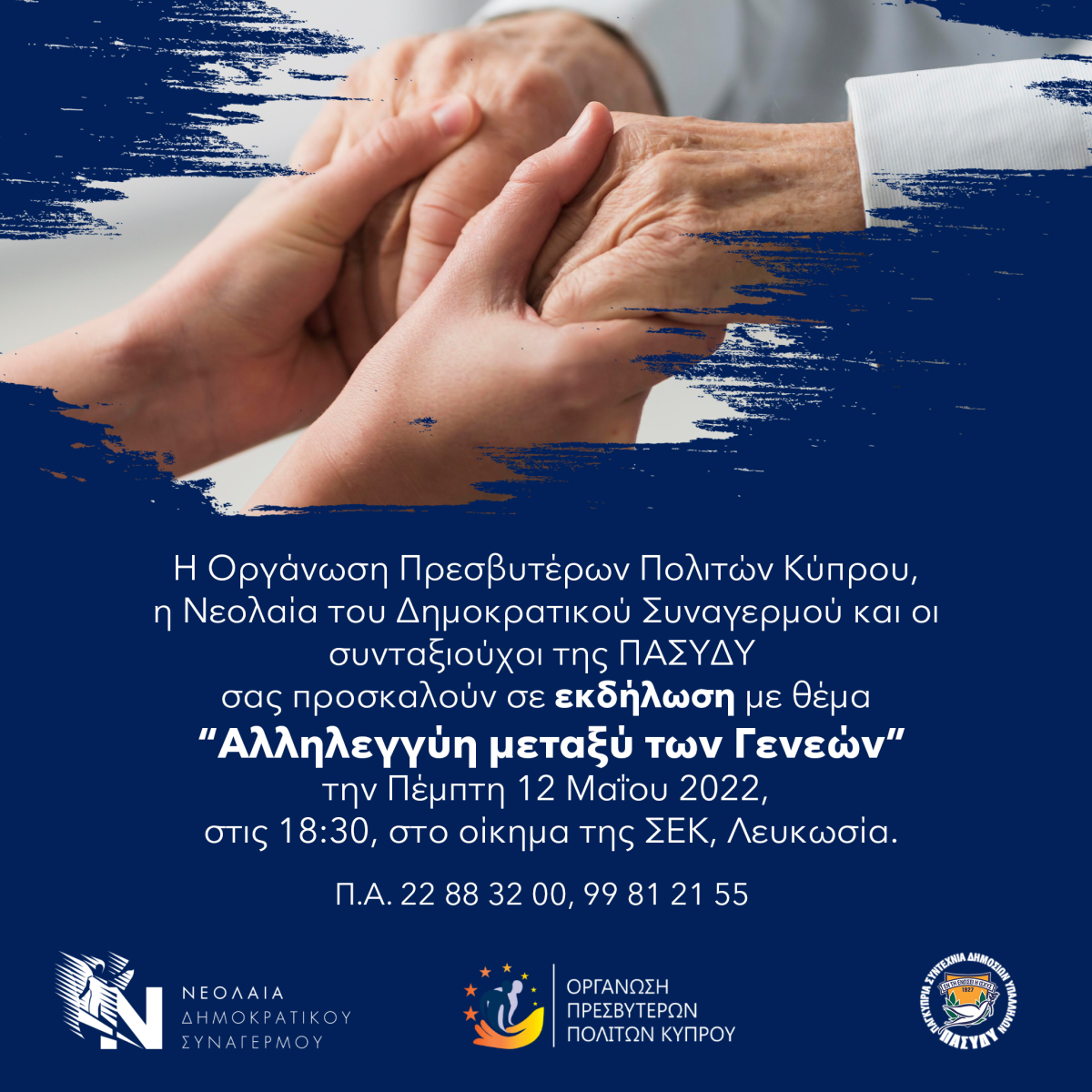 5/12/2022 Εκδήλωση "Αλληλεγγύη μεταξύ των Γενεών" Τελευταία Νέα 3/20/2026 Ενημέρωση για το Ομαδικό Σχέδιο Ασφάλισης ΠΑΣΥΔΥ και τις νέες πρόνοιες για τη Φορολόγηση Φυσικών Προσώπων 3/9/2026 Εκδήλωση ΠΑΣΥΔΥ για την Παγκόσμια Μέρα της Γυναίκας 3/9/2026 Ανακοίνωση: Οι Κτηνιατρικές Υπηρεσίες τηρούν πρωτόκολλα 2/10/2026 Ομαδικό Σχέδιο Ασφάλισης Ζωής ΠΑ.ΣΥ.Δ.Υ. 2/3/2026 Ετήσιες Τακτικές Γενικές Συνελεύσεις Κλάδων και Επαρχιακών Τμημάτων Τα νέα του Κλάδου Συνταξιούχων ΠΑ.ΣΥ.Δ.Υ. Μεταρρύθμιση της Δ.Υ. Νέο Σχέδιο Συνταξιοδοτικών Ωφελημάτων-Εγχειρίδιο Εξοχικά Διαμερίσματα ΠΑ.ΣΥ.Δ.Υ.-Κρατήσεις