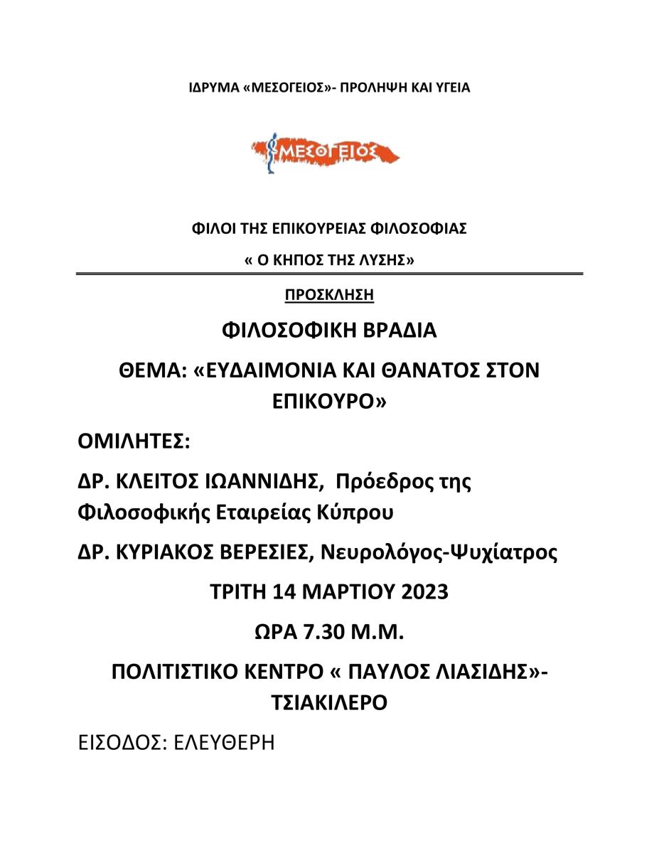 3/14/2023 Φιλοσοφική Βραδιά με Θέμα: «Ευδαιμονία και Θάνατος στον Επίκουρο» Τελευταία Νέα 3/20/2026 Ενημέρωση για το Ομαδικό Σχέδιο Ασφάλισης ΠΑΣΥΔΥ και τις νέες πρόνοιες για τη Φορολόγηση Φυσικών Προσώπων 3/9/2026 Εκδήλωση ΠΑΣΥΔΥ για την Παγκόσμια Μέρα της Γυναίκας 3/9/2026 Ανακοίνωση: Οι Κτηνιατρικές Υπηρεσίες τηρούν πρωτόκολλα 2/10/2026 Ομαδικό Σχέδιο Ασφάλισης Ζωής ΠΑ.ΣΥ.Δ.Υ. 2/3/2026 Ετήσιες Τακτικές Γενικές Συνελεύσεις Κλάδων και Επαρχιακών Τμημάτων Τα νέα του Κλάδου Συνταξιούχων ΠΑ.ΣΥ.Δ.Υ. Μεταρρύθμιση της Δ.Υ. Νέο Σχέδιο Συνταξιοδοτικών Ωφελημάτων-Εγχειρίδιο Εξοχικά Διαμερίσματα ΠΑ.ΣΥ.Δ.Υ.-Κρατήσεις