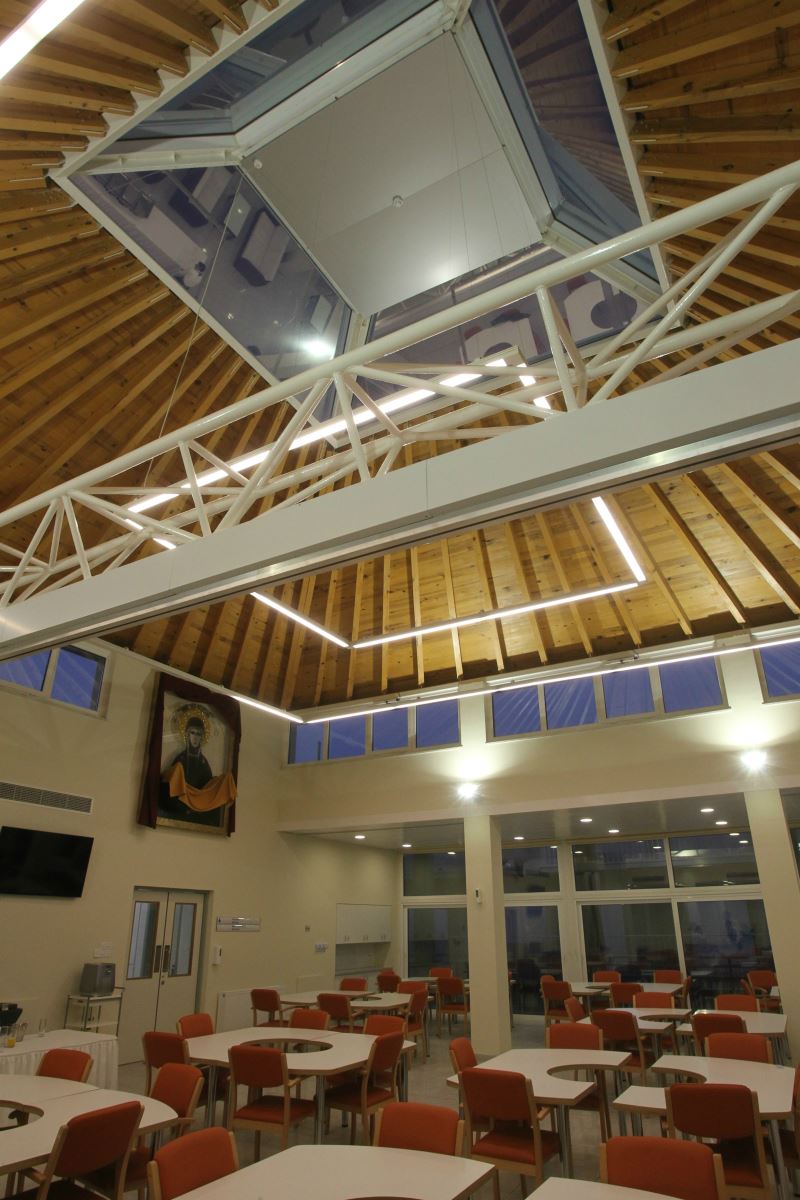 Οι ένοικοι στεγάζονται σε ένα σύγχρονο, ειδικά σχεδιασμένο και εξοπλισμένο κτήριο, με υποδαπέδια κεντρική θέρμανση και κλιματισμό σε όλα τα δωμάτια. Το εσωτερικό του κτηρίου περιλαμβάνει άνετα σαλόνια, ζεστά καθιστικά, ειδικούς χώρους για δραστηριότητες, καφεστιατόριο και βοηθητικούς χώρους. Για τις ανάγκες των πελατών και των επισκεπτών είναι διαθέσιμος μεγάλος χώρος στάθμευσης.